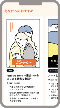 recriが厳選した作品候補の中から、あなたのデータをもとにおすすめ作品をセレクト。毎月、心に残る舞台と出会えます。